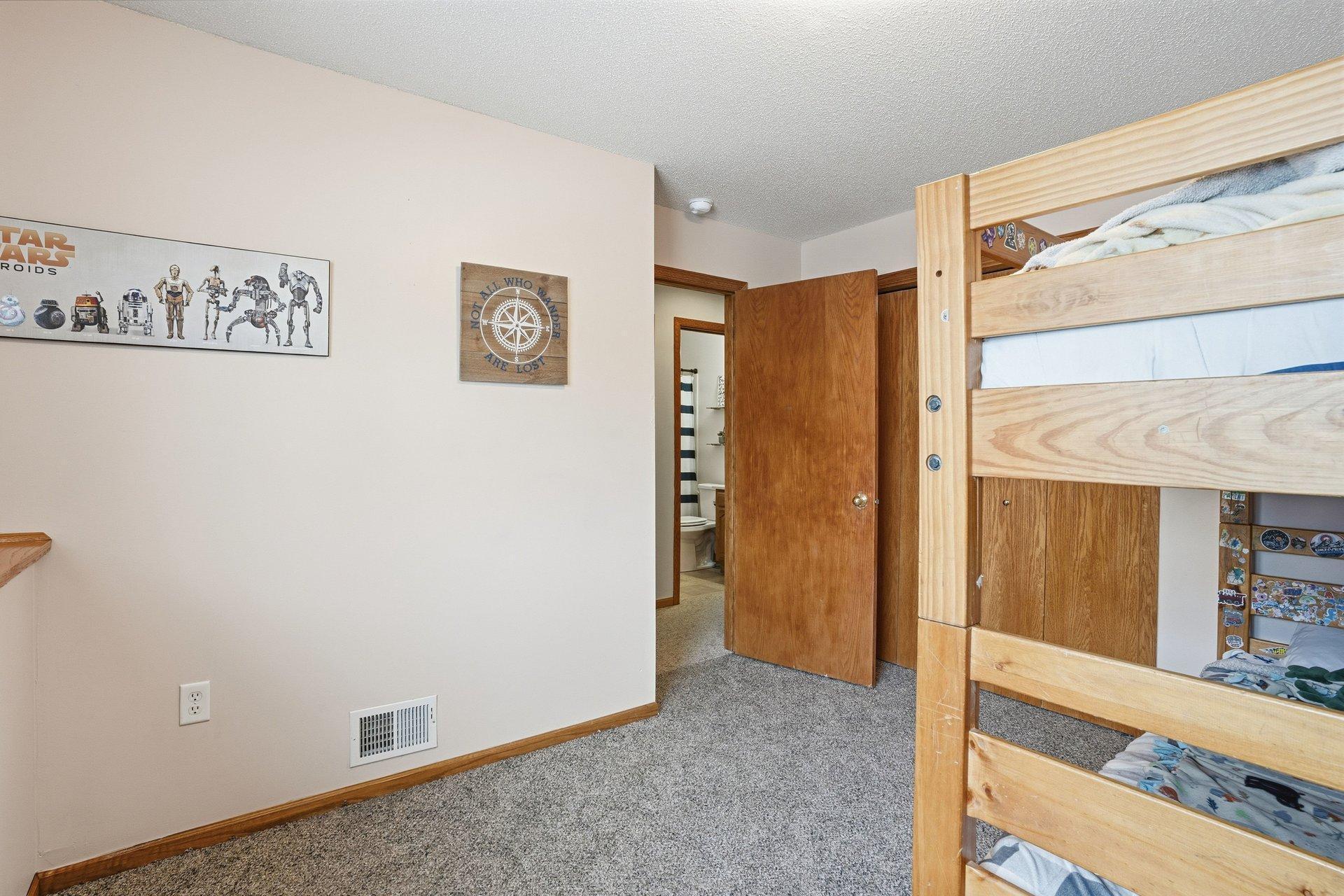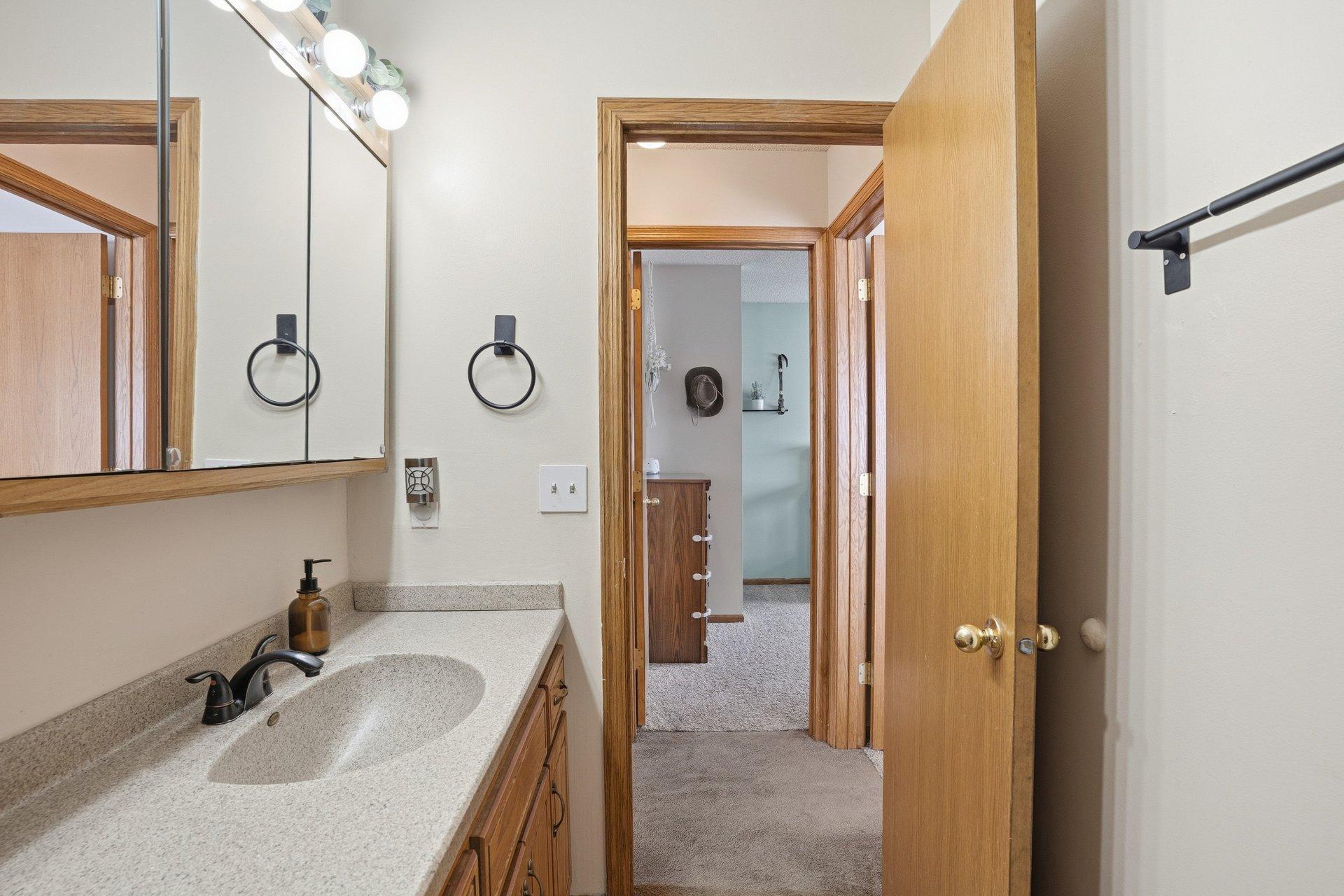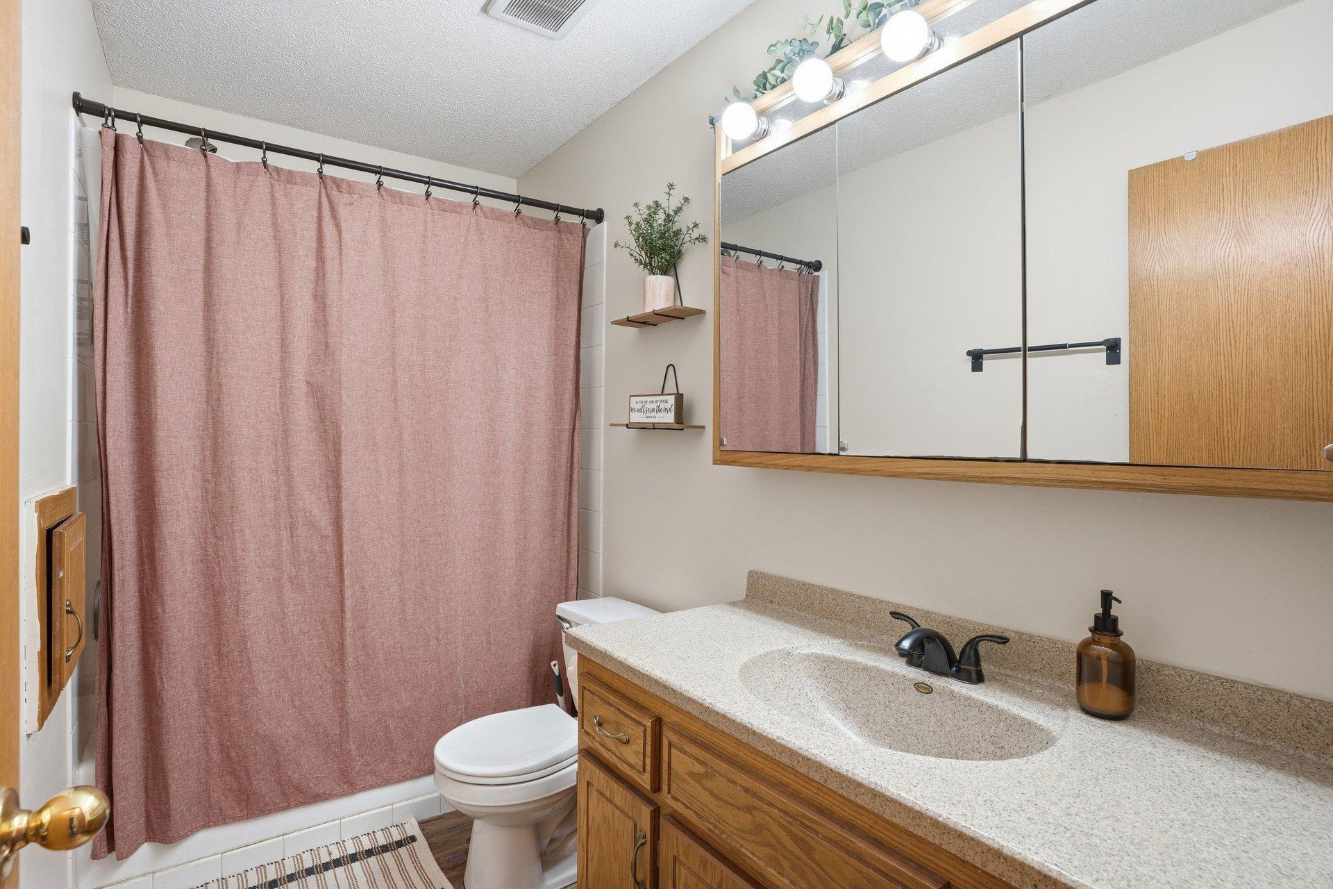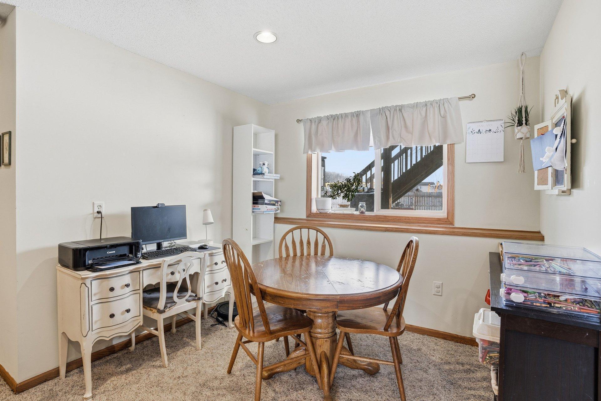 This inviting 3-bedroom, 2-bath split-entry home is located in a well-established Cologne neighborhood. The kitchen and dining area feature attractive updated wood flooring, stainless steel refrigerator and microwave, and a convenient snack bar that connects the two spaces. Sliding glass doors from both the owner's bedroom and the dining area open to a deck that spans the entire length of the home. The main level also offers a comfortable living room, two additional bedrooms, and a full bathroom. Downstairs, you'll find another bedroom and bath, a spacious family room, an exercise area, and ample space for a home office. The backyard backs up to Marion Fields Park, with a public playground and ball fields just beyond the property, making this a truly special place to call home.