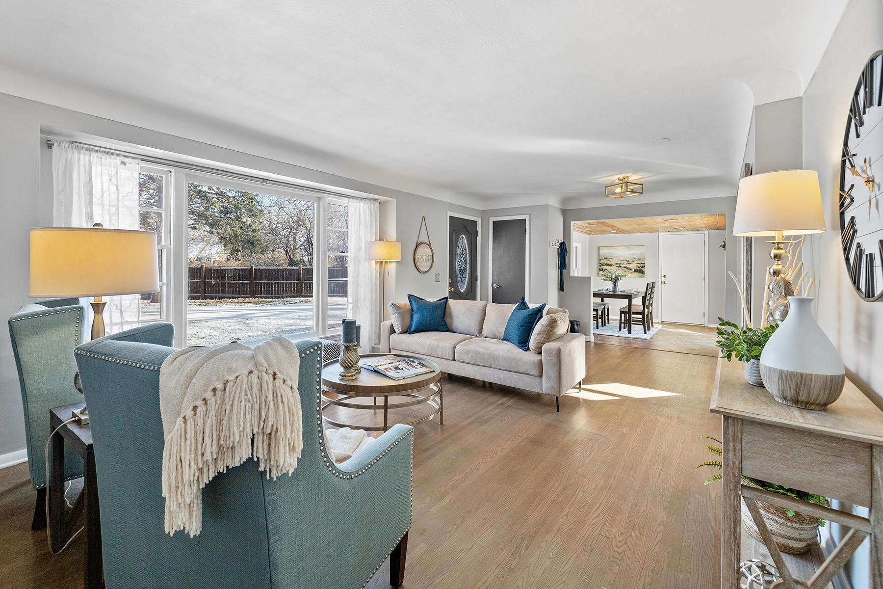 Beautifully updated and well-maintained 5BR, 2BA Rambler on a spacious .35-acre lot. This home features a chef's kitchen with stainless steel appliances, including a new 6-burner stove/oven, Samsung smart fridge, new countertops, breakfast bar, and tile floors. The dining and living areas flow seamlessly from the kitchen, showcasing refinished original hardwood floors and fresh paint throughout. Upgrades include a new AC unit in 2019, smart Nest thermostat, new water heater in 2021, Nest front door camera, and a radon mitigation system. The oversized two-car garage has been fully updated with drywall, insulation, new insulated doors, windows, a side door, and electric wall heating. Outside, enjoy a fenced yard with a new, large firepit, a raised garden bed, and mature black walnut trees surrounding the lot--offering seasonal beauty and attracting a variety of wildlife, including turkeys, deer, foxes, and occasional sandhill cranes. Located in the Hopkins School District (Eisenhower/XingXang Academy, West Middle School, and Hopkins High), the neighborhood features a new playground added in 2021 and saw road improvements in the summer of 2024. The City of Minnetonka is planning a sidewalk addition to Hopkins Crossroad, expected around 2025. Move in and enjoy this delightful home in a scenic setting!