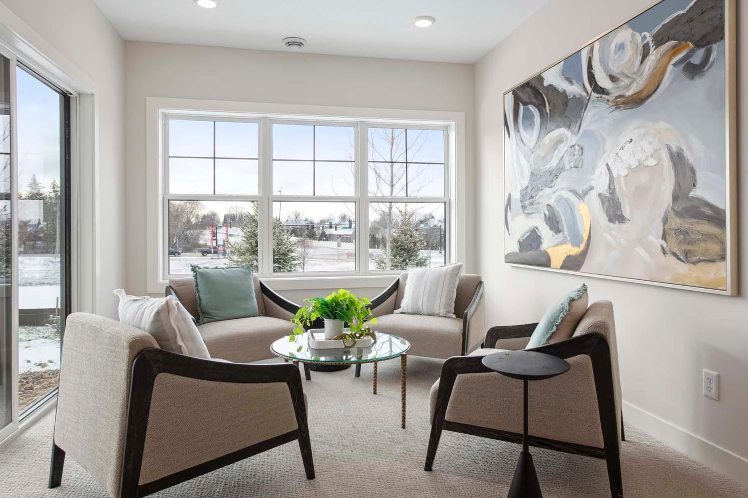 The Villas at Applewood Pointe are a small community of 7 homes. Enjoy one level living with walk-out 9' basements in convenient location near Valley Wood Golf Course, Minnesota Zoo and Lebanon Hills Park. Featuring open floor plan, beautiful kitchen with oversized island, stainless appliances and custom cabinets, gathering room fireplace, light filled sunroom and finished lower level! Ask how you can receive up to $10,000 towards financing with our affiliated lender and title company. *Prices, square footage, and availability are subject to change without notice. Photos, virtual/video tours, and/or illustrations may not depict actual home plan configuration. Features, materials, and finishes shown may contain options that are not included in the price. *