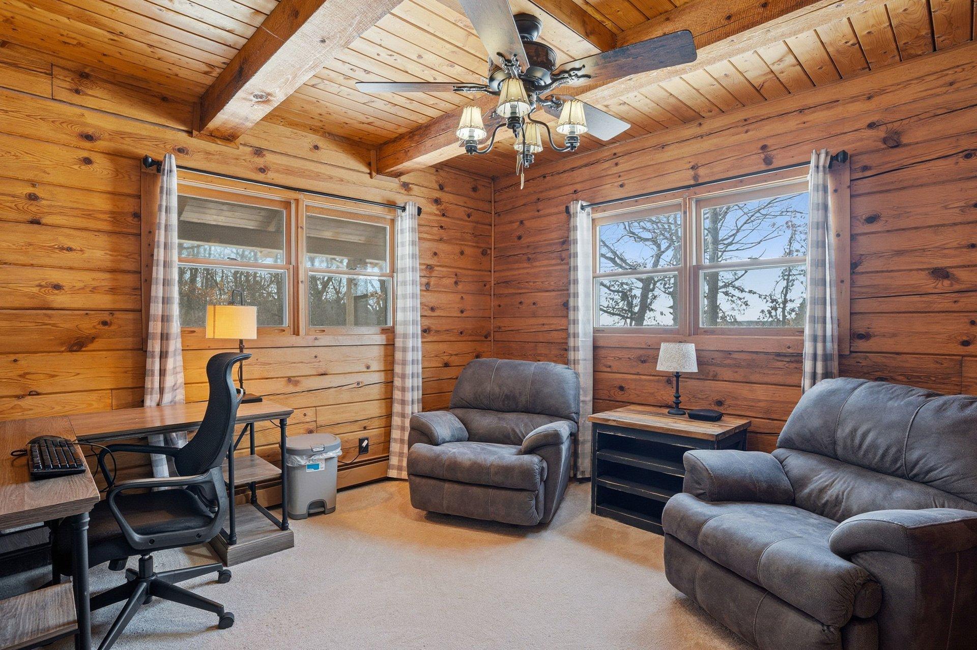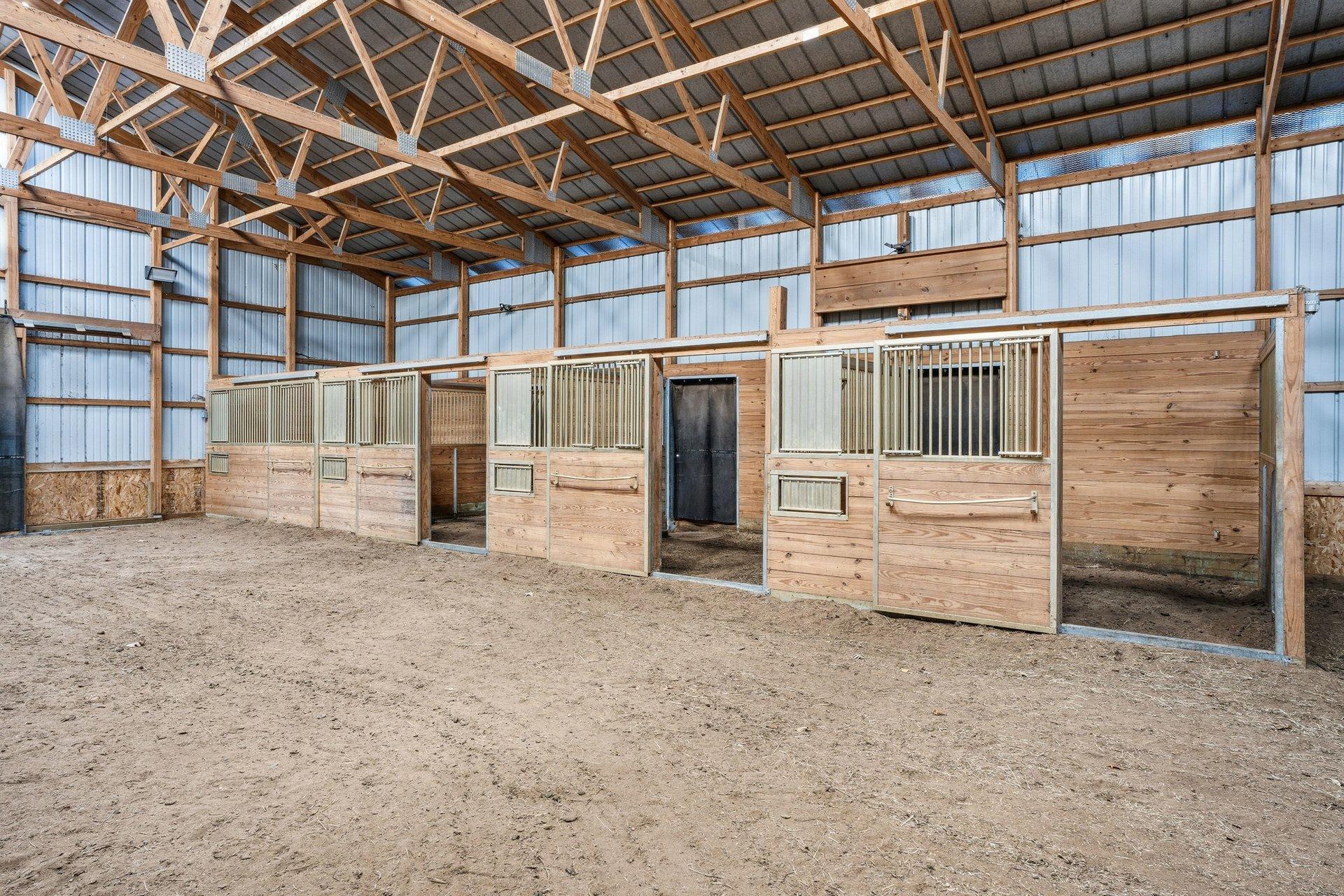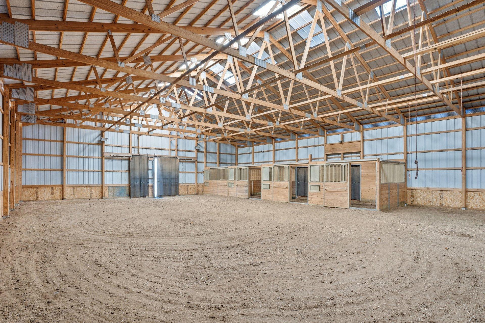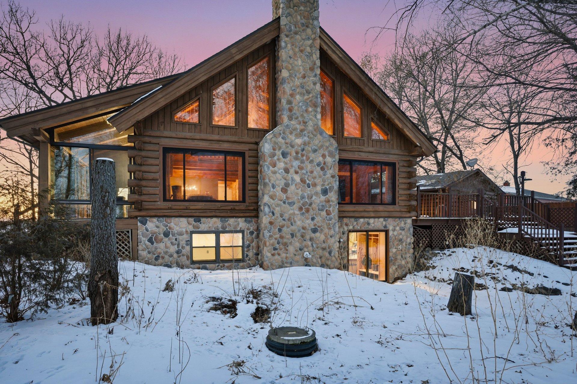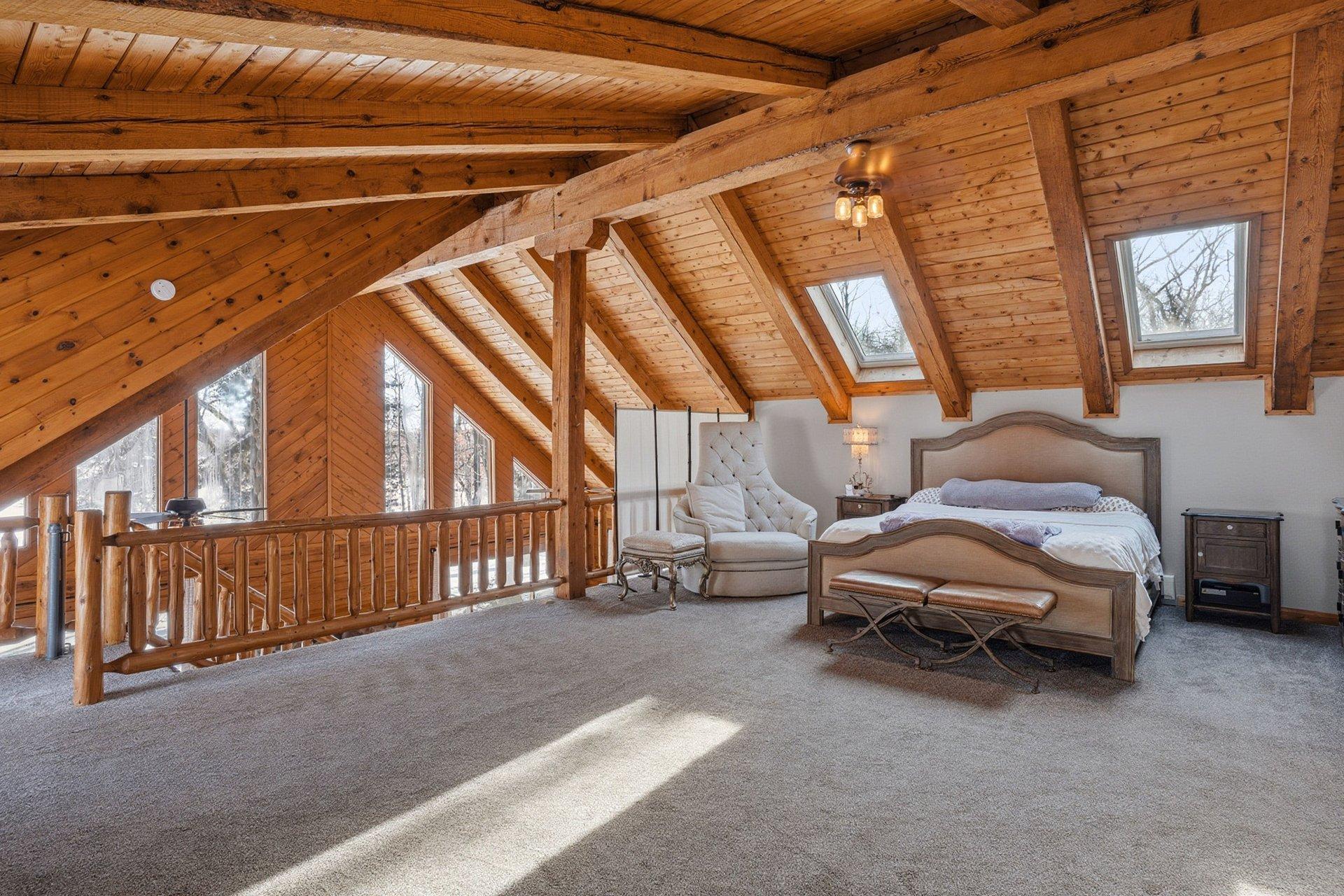Experience the freedom of country living in this stunning custom log home set on 12.7 private, tree-lined acres. Tucked among mature trees with open pastures and wide skies, this property offers the kind of space and serenity that's increasingly hard to find -- whether you envision a fully equipped horse setup, hobby farm, recreational retreat, or simply room to breathe. Designed with equestrian living in mind, the land is thoughtfully arranged with fully fenced pastures, automatic waterers, eight stalls, and two dedicated tack rooms -- truly move-in ready for horses. Two impressive pole buildings provide exceptional flexibility: an 80x50 Morton barn with 30-amp RV hookup and a 50x30 secondary building with water, electricity, lighting, and concrete floors. Store trailers, equipment, recreational vehicles, or create workshop space -- the possibilities here are extensive. A third garage and an extra-deep attached two-car garage with a wood-burning stove add even more functional space for projects, storage, or year-round use. Inside, the home blends rustic character with comfortable living. The loft-style primary bedroom offers a bright, open retreat overlooking the home's main living space. It currently embraces an airy, open-concept design, but also provides the opportunity to easily add a wall and door for enhanced privacy if desired -- allowing you to tailor the space to your lifestyle. The primary bathroom features a walk-in shower, soaking tub, and peaceful views of the surrounding acreage. Hardwood floors span the main level, and the lower level offers flexible finished space ideal for a family room, fitness area, home office, or recreation space. Large windows throughout the home invite in natural light and frame scenic views in every season. Outdoors, enjoy evenings by the fire, morning coffee overlooking your pastures, and frequent wildlife sightings including deer and sandhill cranes. A designated dog area and well-maintained fencing make the property both practical and enjoyable. With approximately 15 minutes to Forest Lake and just 8 minutes to Chisago City or Lindstrom -- plus easy access to Highway 35 and surrounding communities -- you can enjoy peaceful country living without sacrificing convenience. This is more than a home -- it's a lifestyle property offering privacy, flexibility, and room to create the life you want.