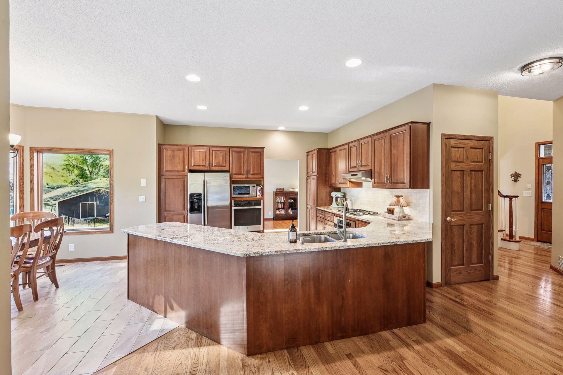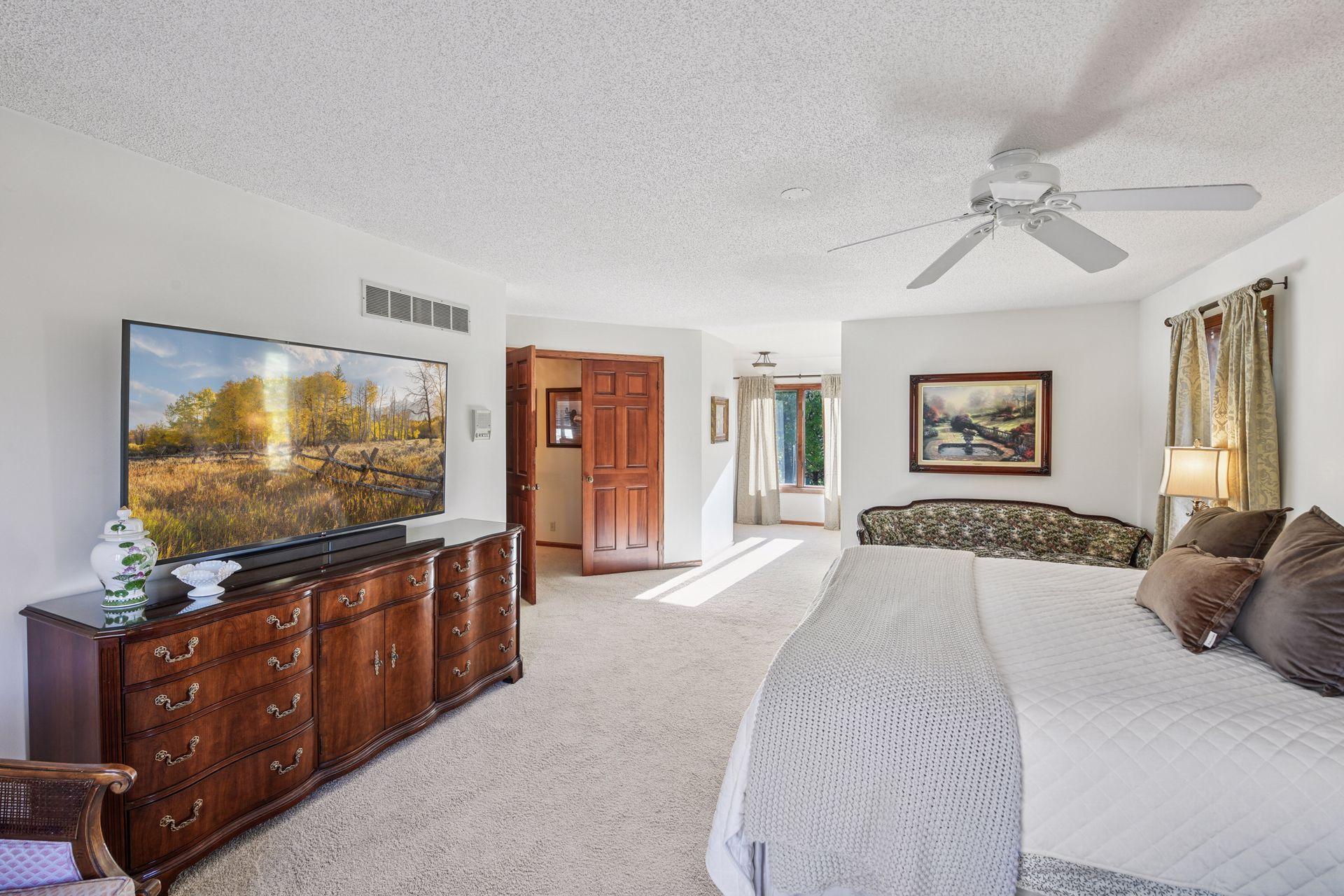 Nestled in the highly sought-after Lakeview Terrace neighborhood near Lake Waconia, this meticulously maintained home offers 4 bedrooms, 3 baths, and a bright, open layout designed for everyday comfort and entertaining. The upper level features 3 bedrooms, including a spacious primary suite with a private jetted tub room and generous walk-in closet. On the main floor, you'll find the fourth bedroom, one of two laundry rooms, an open-concept kitchen, family, and dining area, plus formal dining and living spaces. The lower level impresses with a large recreation room featuring dual walkouts to an expansive patio, a second laundry room, and a two-stall garage workshop located beneath the main garage. Tucked on a quiet cul-de-sac surrounded by mature trees and just blocks from the boat landing, this home perfectly blends comfort, functionality, and an unbeatable location.