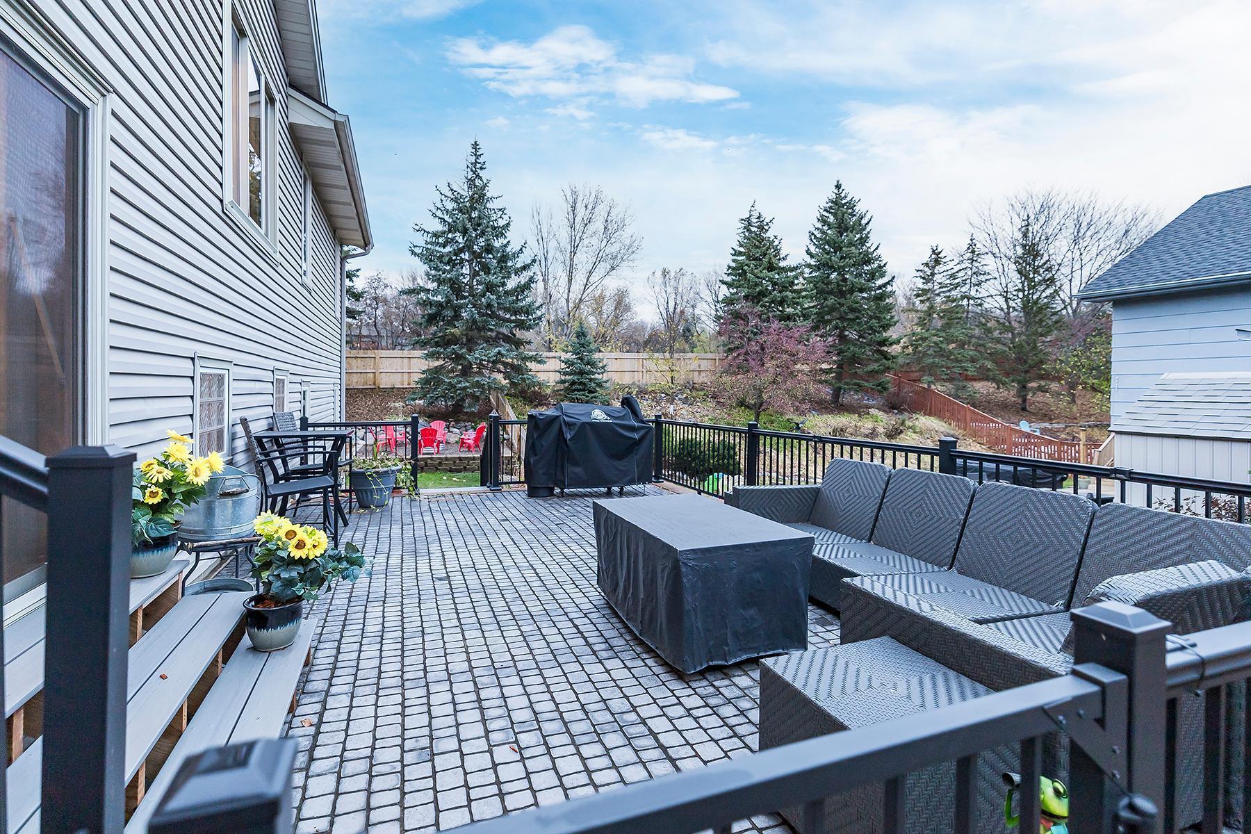 The finished lower level adds even more versatility, featuring a family room with a gas fireplace, two bedrooms, and a bathroom, along with convenient laundry facilities. The home's 2024 upgrades include a new fence in the backyard, ensuring privacy, while the impressive outdoor space features a 23' x 15' patio off the kitchen/dining area, complete with a tranquil fountain--perfect for entertaining or enjoying sunny days.
