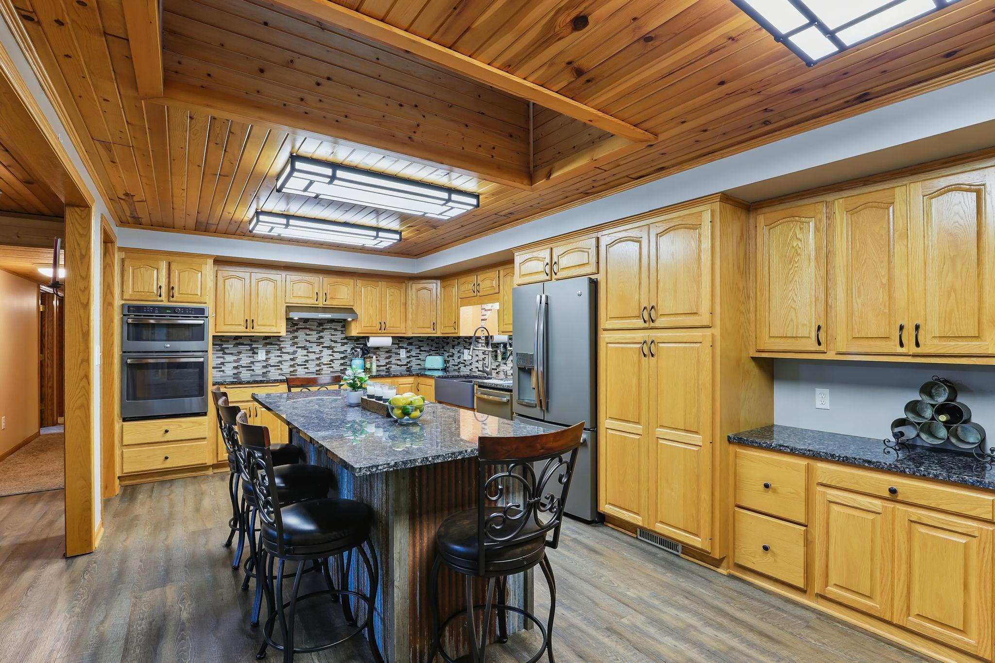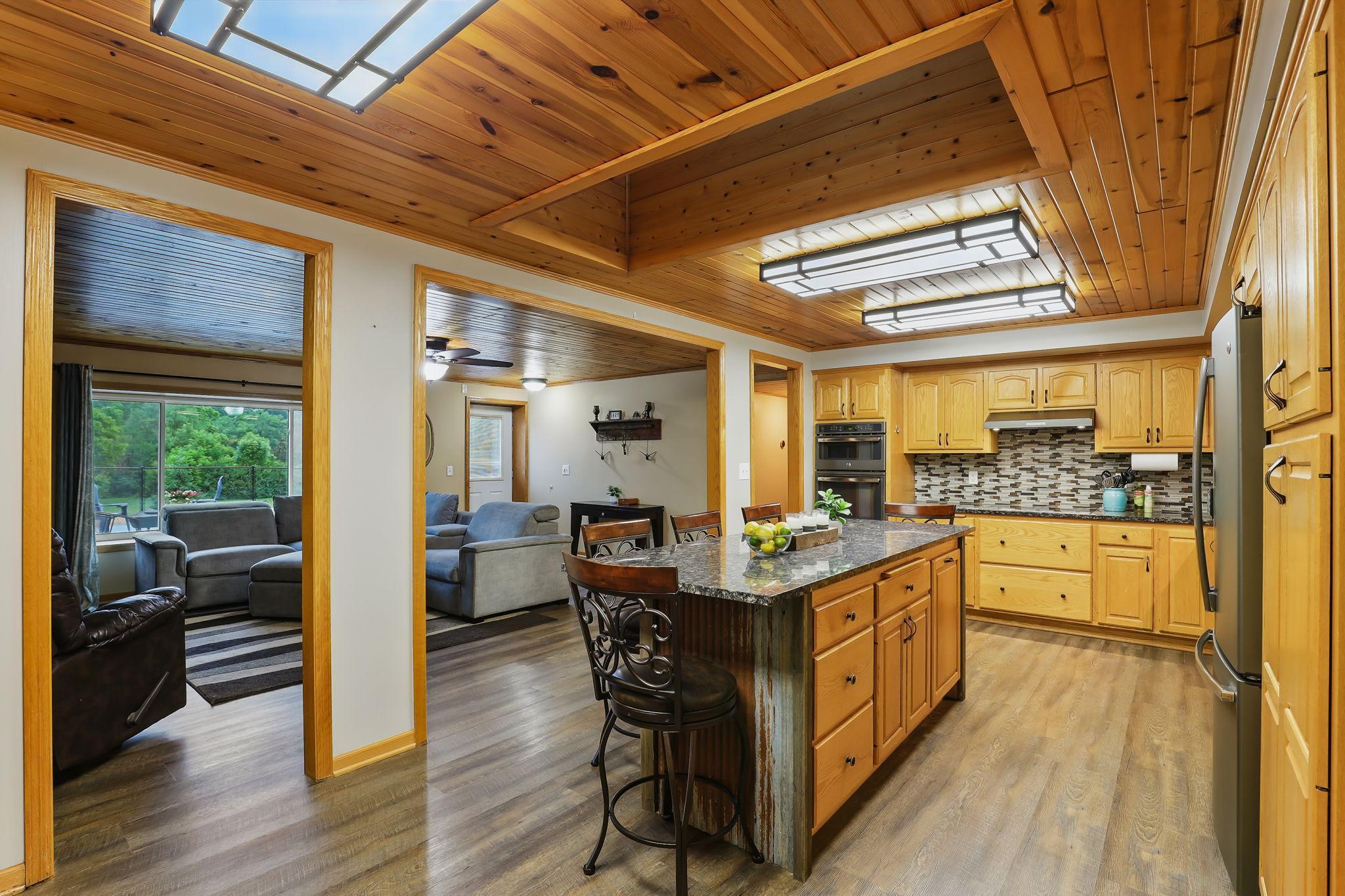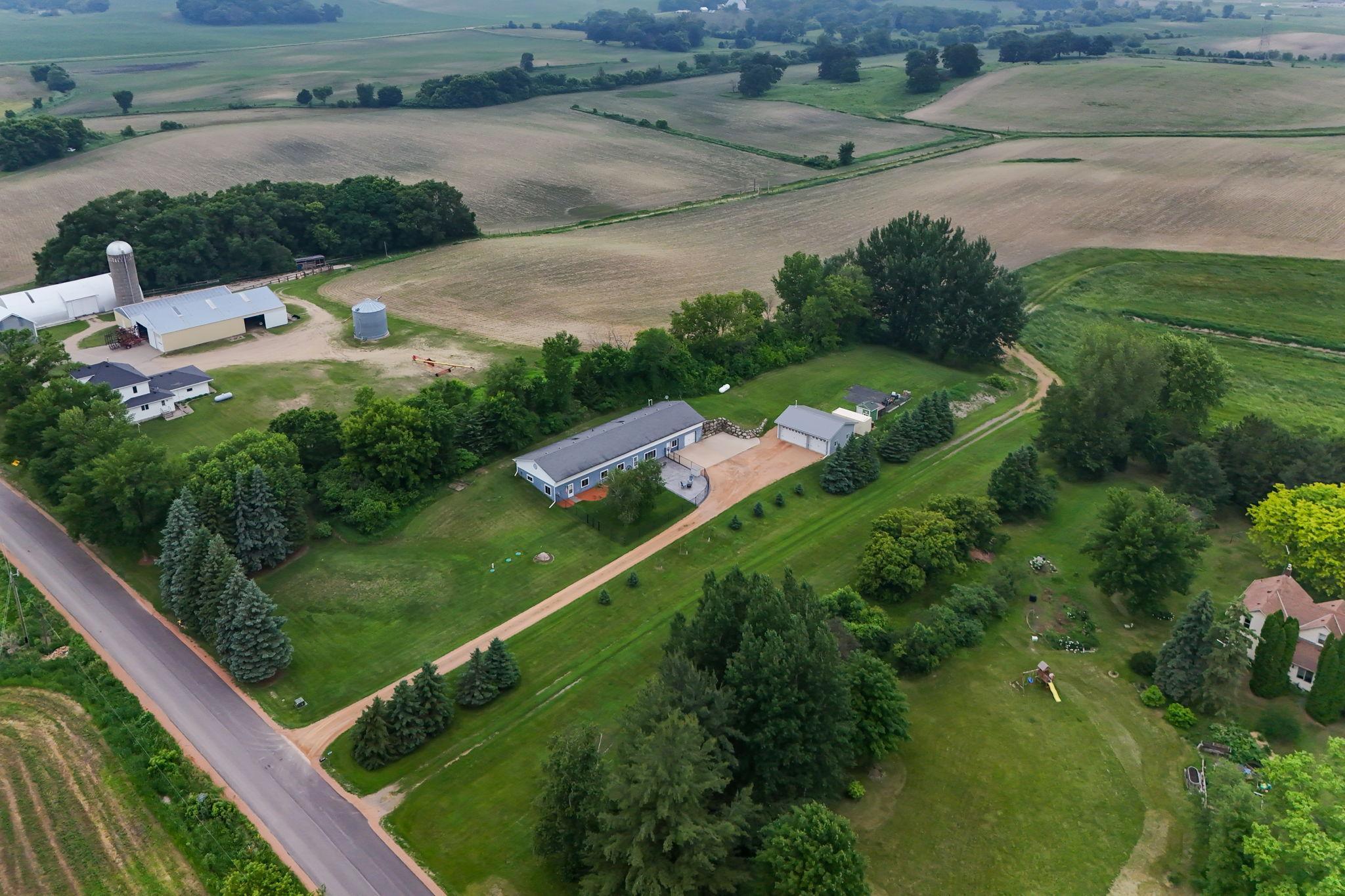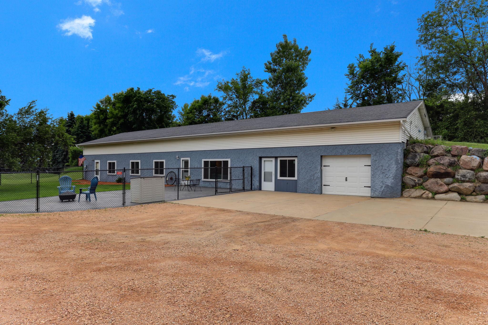 Tired of neighbors right outside your window? This spacious 1-story earth home sits on over an acre of land, surrounded by open farmland and tall, mature trees that give you the privacy and peace you've been looking for. With over 3,000 square feet all on one level, there's room to spread out and enjoy everyday living. Step inside to find large windows, skylights, and updated flooring that was replaced in 2018. The remodeled kitchen is a standout with stainless steel appliances, granite countertops, a large farmhouse sink, and a center island with a breakfast bar. The primary suite has its own private bathroom and a walk-in closet, and the cozy family room with a fireplace is perfect for relaxing. You'll also love the attached heated shop with spray foam insulation (added in 2018) and the detached 3-stall heated garage/shop. Out front, a portion of the yard is fully fenced and includes a large poured concrete patio--added just last year--perfect for entertaining, grilling, or relaxing in the sun. Beyond the fence, the wide-open yard includes a garden, chicken coop, and plenty of space to enjoy the outdoors. Located just minutes from Historic Chaska and Carver with easy access to Hwy 212, this home offers the space, comfort, and privacy you've been hoping to find.