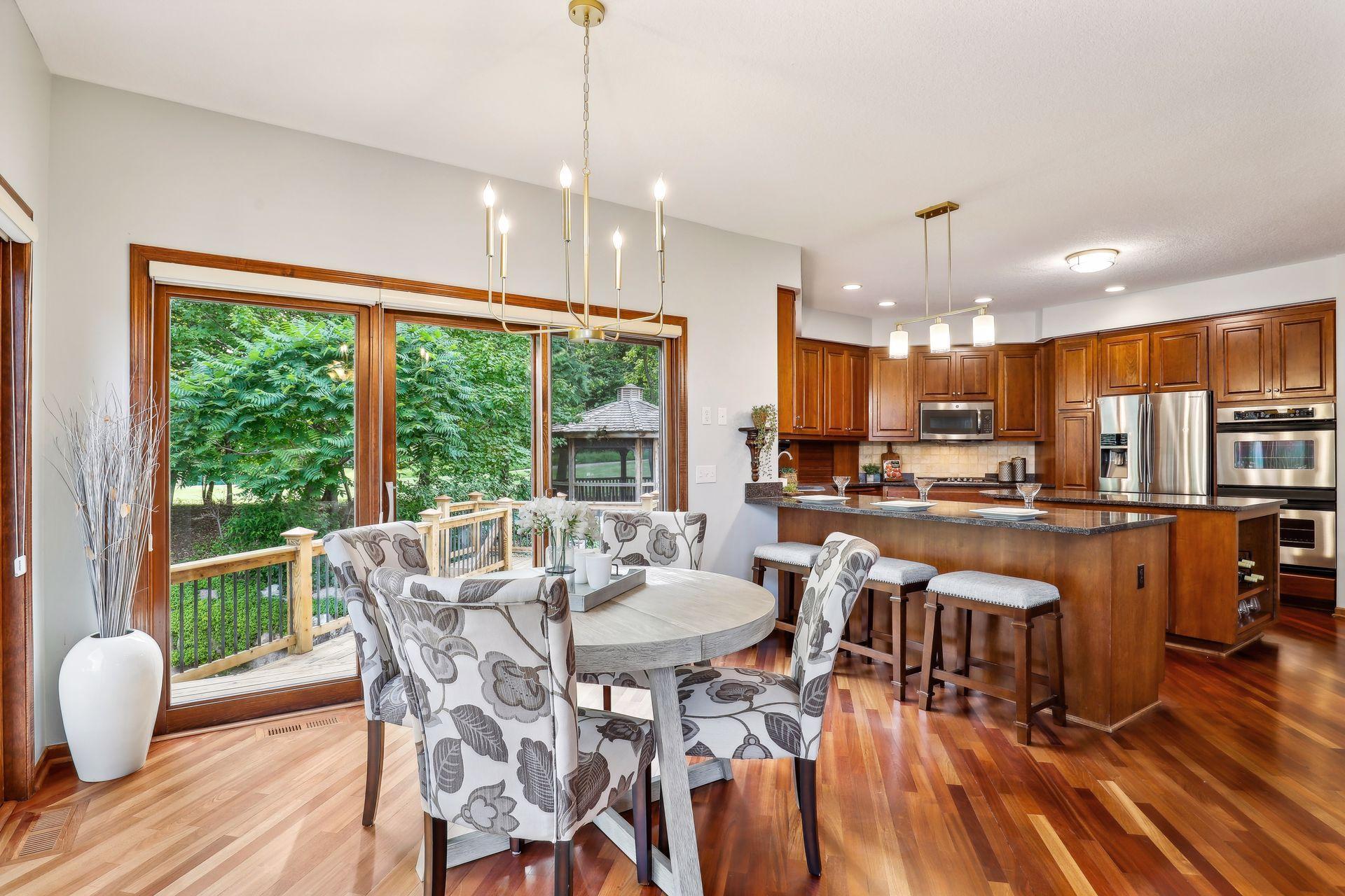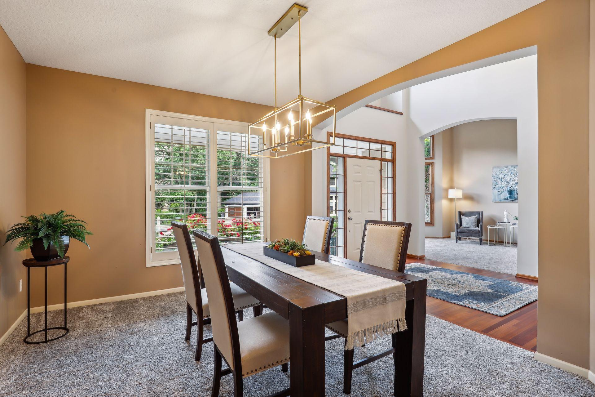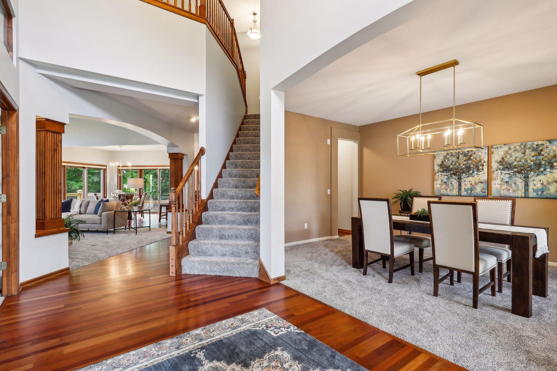 Discover this stunning two-story residence, perfectly tucked away in a serene corner of Chanhassen's coveted Longacres Neighborhood, while being just minutes from all the city conveniences. This expansive home has been meticulously updated with fresh paint, new flooring, stylish door hardware, and contemporary light fixtures, making it feel brand new! Impeccably maintained, it features a seamless blend of open spaces and formal rooms on the main level, perfect for both casual living and elegant entertaining.