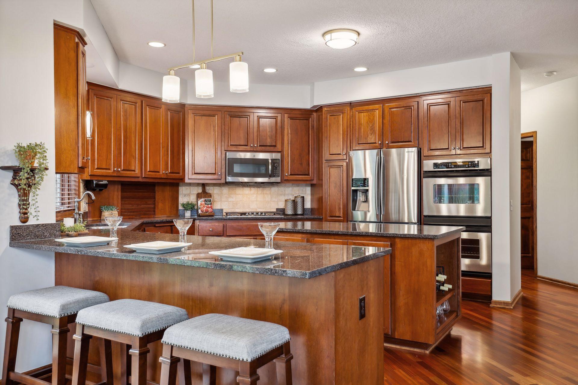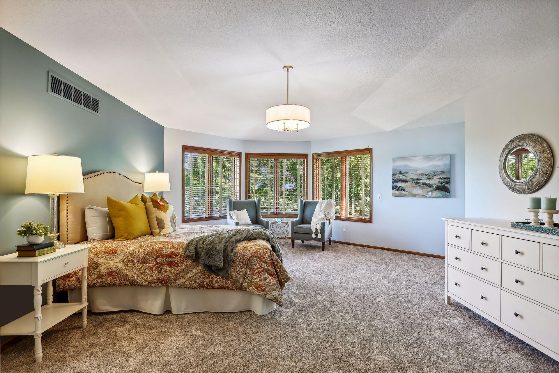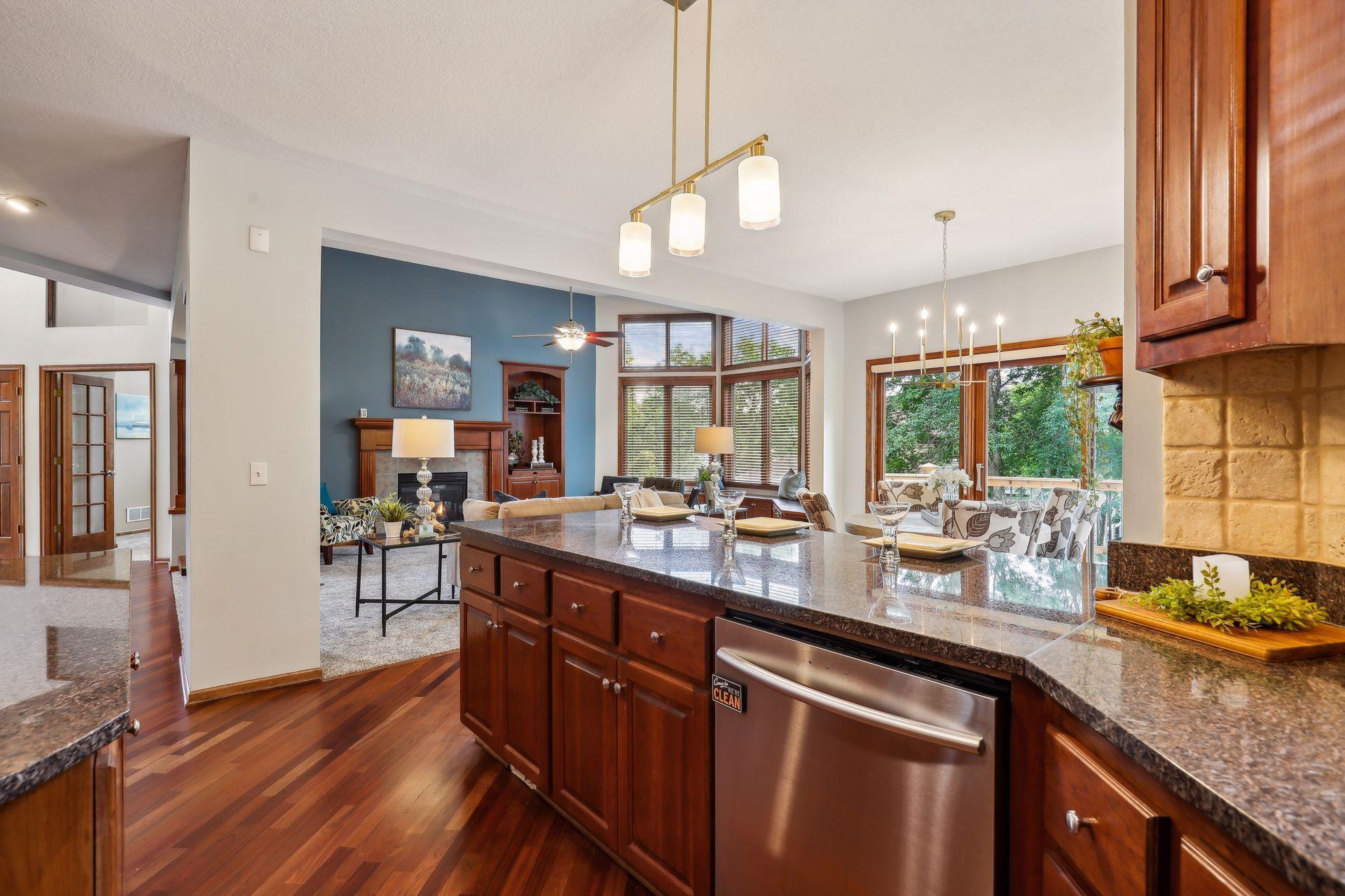 Discover this stunning two-story residence, perfectly tucked away in a serene corner of Chanhassen's coveted Longacres Neighborhood, while being just minutes from all the city conveniences. This expansive home has been meticulously updated with fresh paint, new flooring, stylish door hardware, and contemporary light fixtures, making it feel brand new! Impeccably maintained, it features a seamless blend of open spaces and formal rooms on the main level, perfect for both casual living and elegant entertaining.