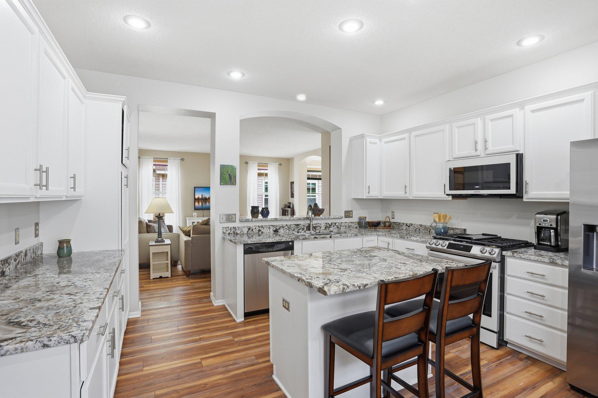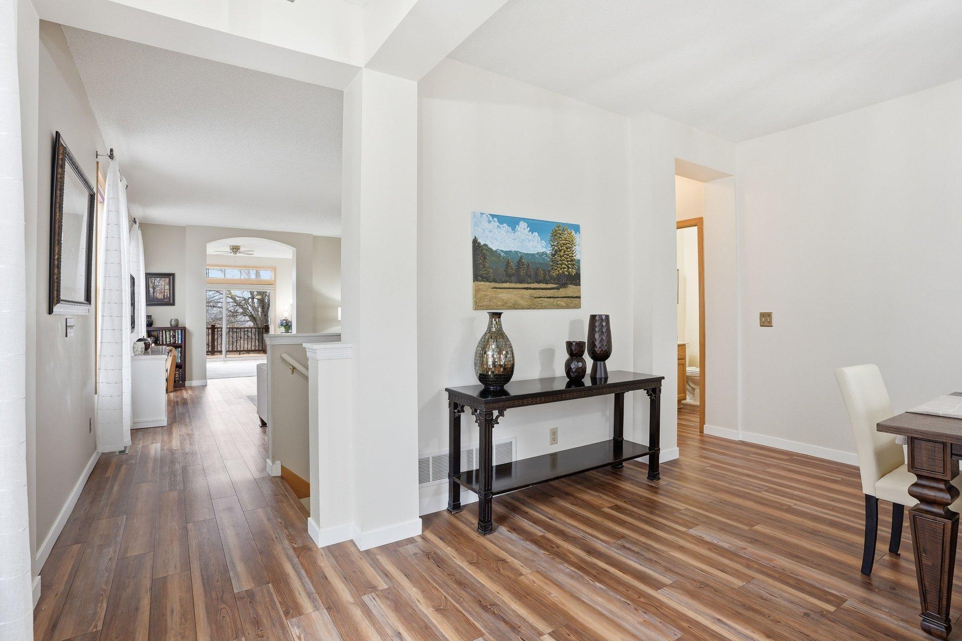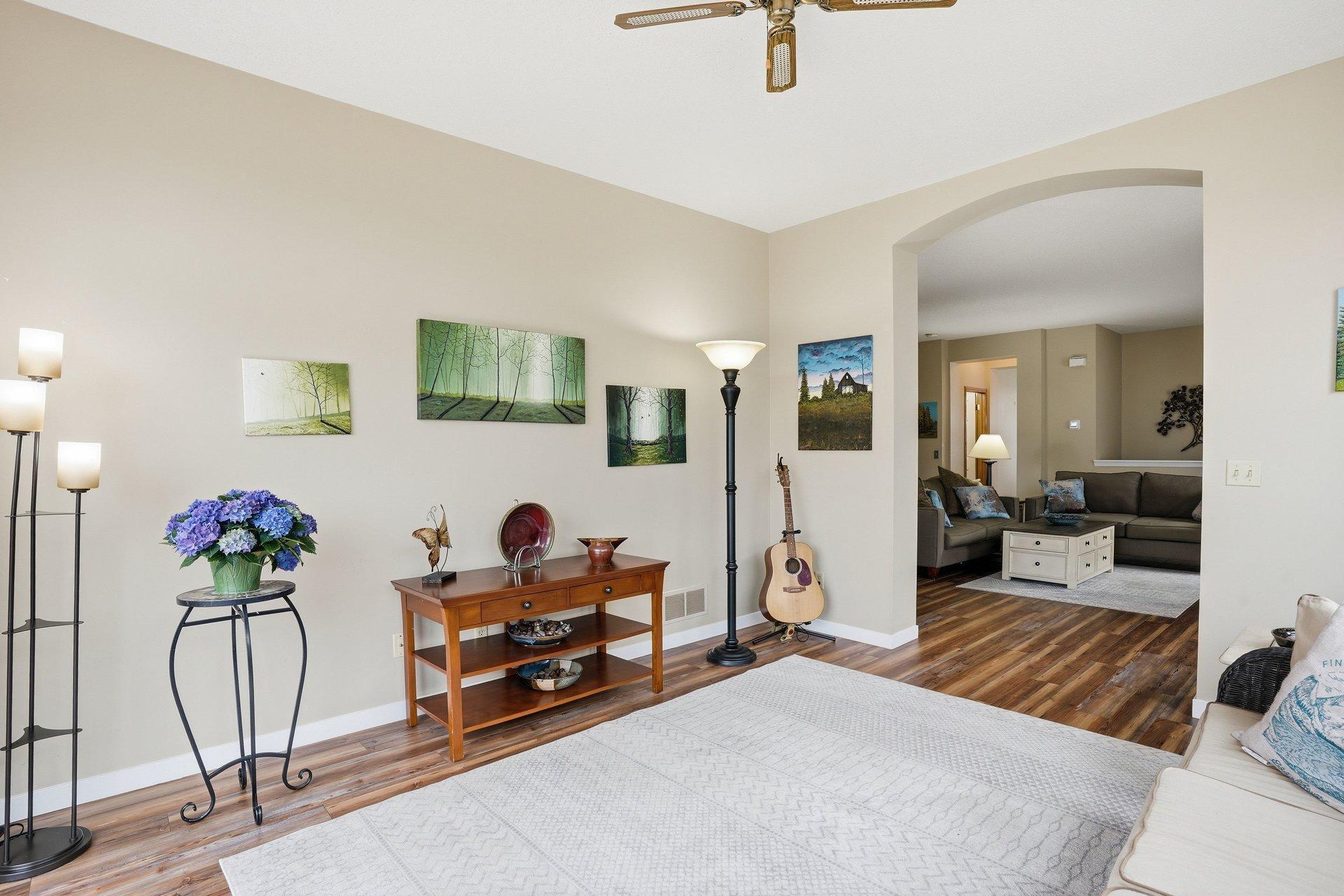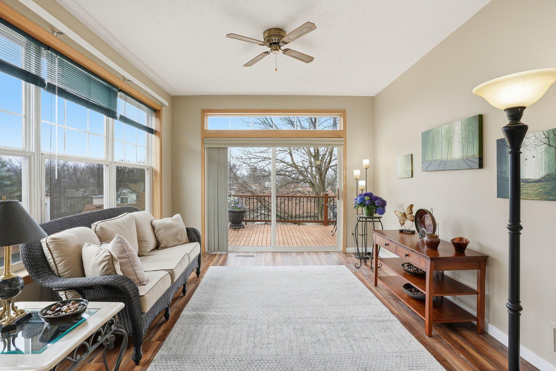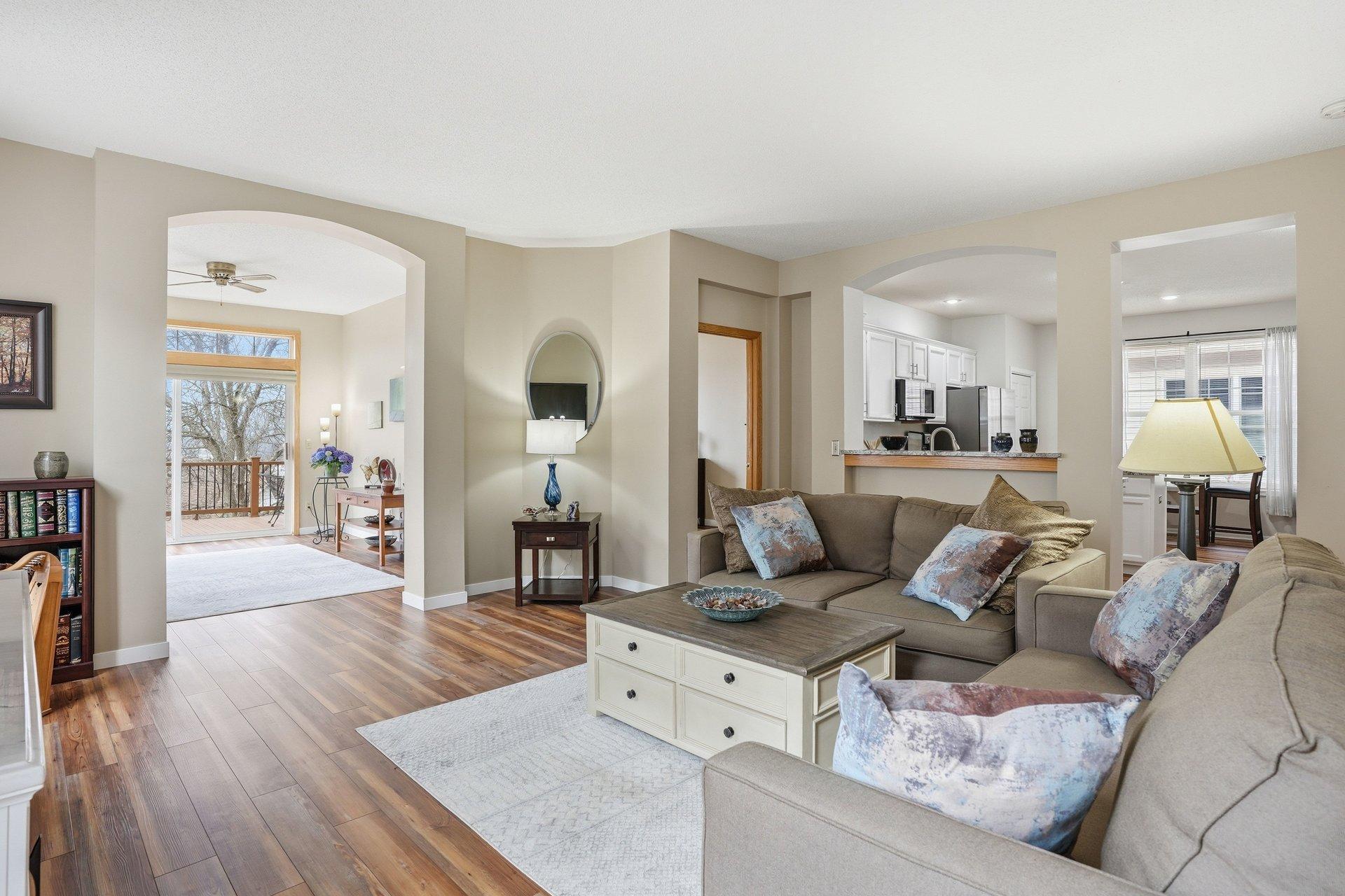 Stunning detached townhome with a walkout basement in Walnut Grove, offering true one-level living in a prime Chanhassen location. This beautifully updated home features a remodeled kitchen with granite countertops, enameled cabinetry, and newer appliances, along with bright, open living spaces filled with natural light from the sunroom. Enjoy a spacious, maintenance-free deck with elevated views, plus a welcoming front porch. The main-level owner's suite offers a scenic view, a walk-in closet with high-end built-ins, and a private bath with double sinks and a whirlpool tub. The finished walkout lower level is ideal for entertaining, complete with a large family room, gas fireplace, and a generous suite with a walk-in closet--plus flexible space for an office, workshop, or exercise room. Recent updates include a new roof, a full kitchen remodel, updated utilities, new flooring, and upgraded closet systems. Low, self-managed association dues and a convenient location close to everything make this home as practical as it is beautiful.
