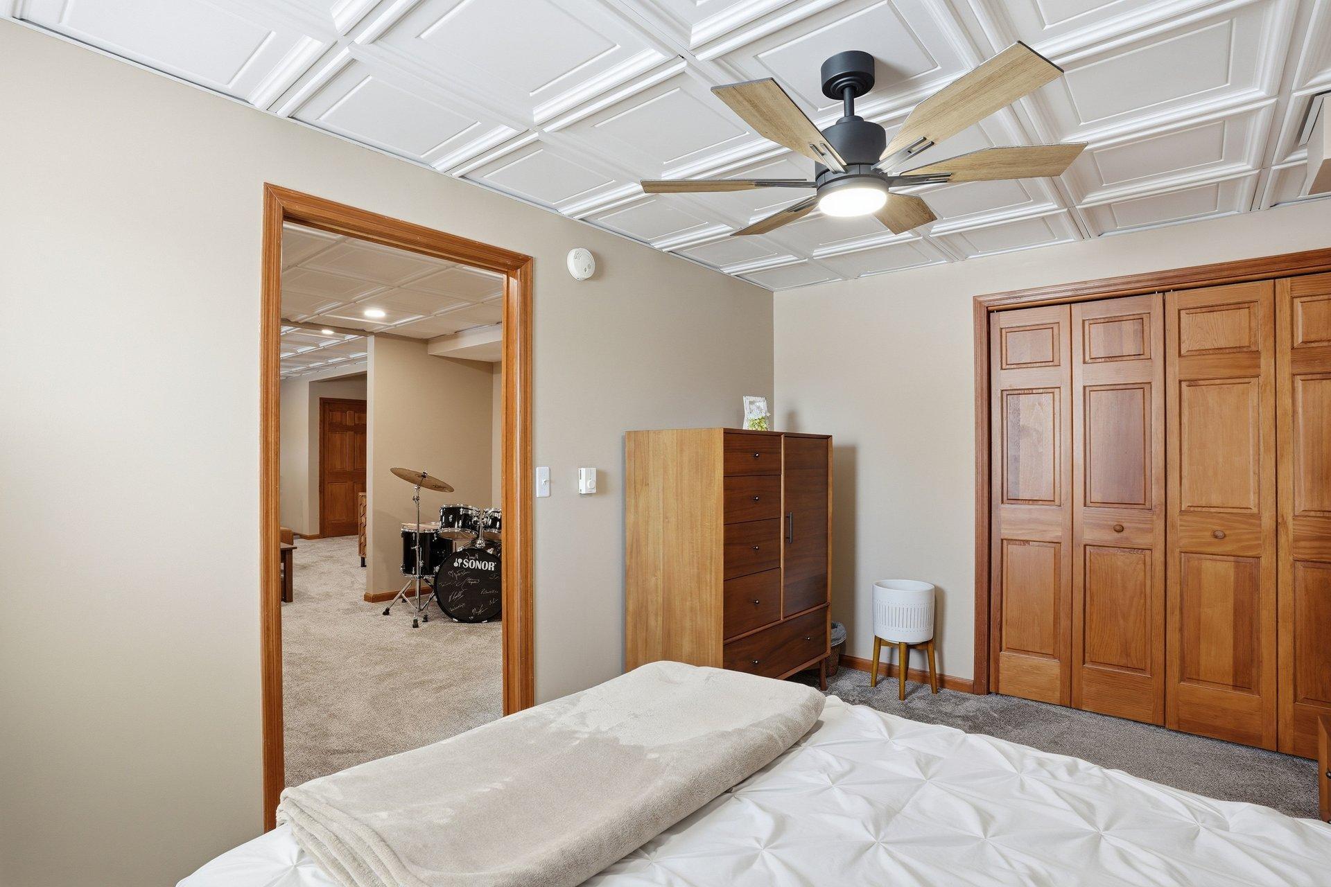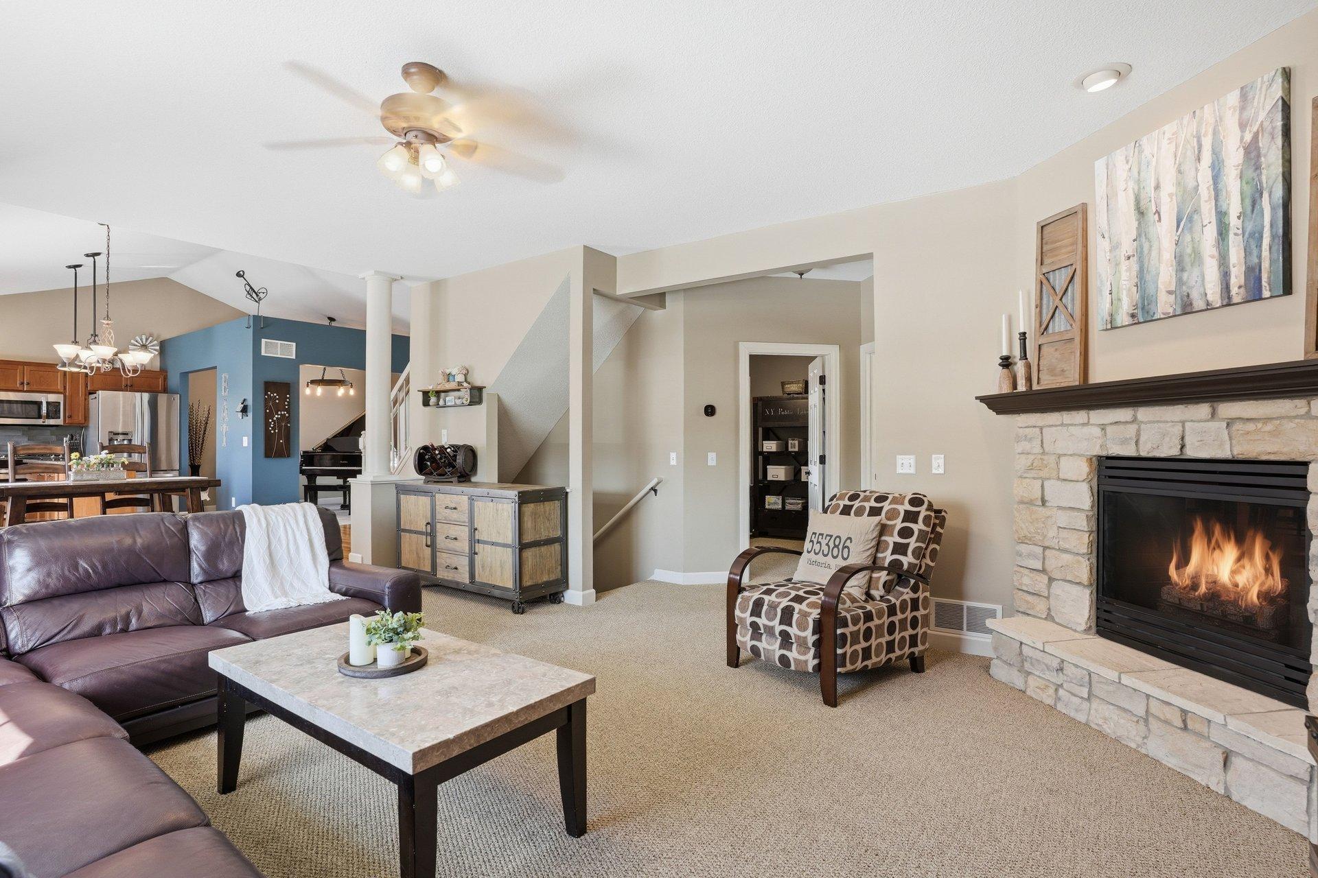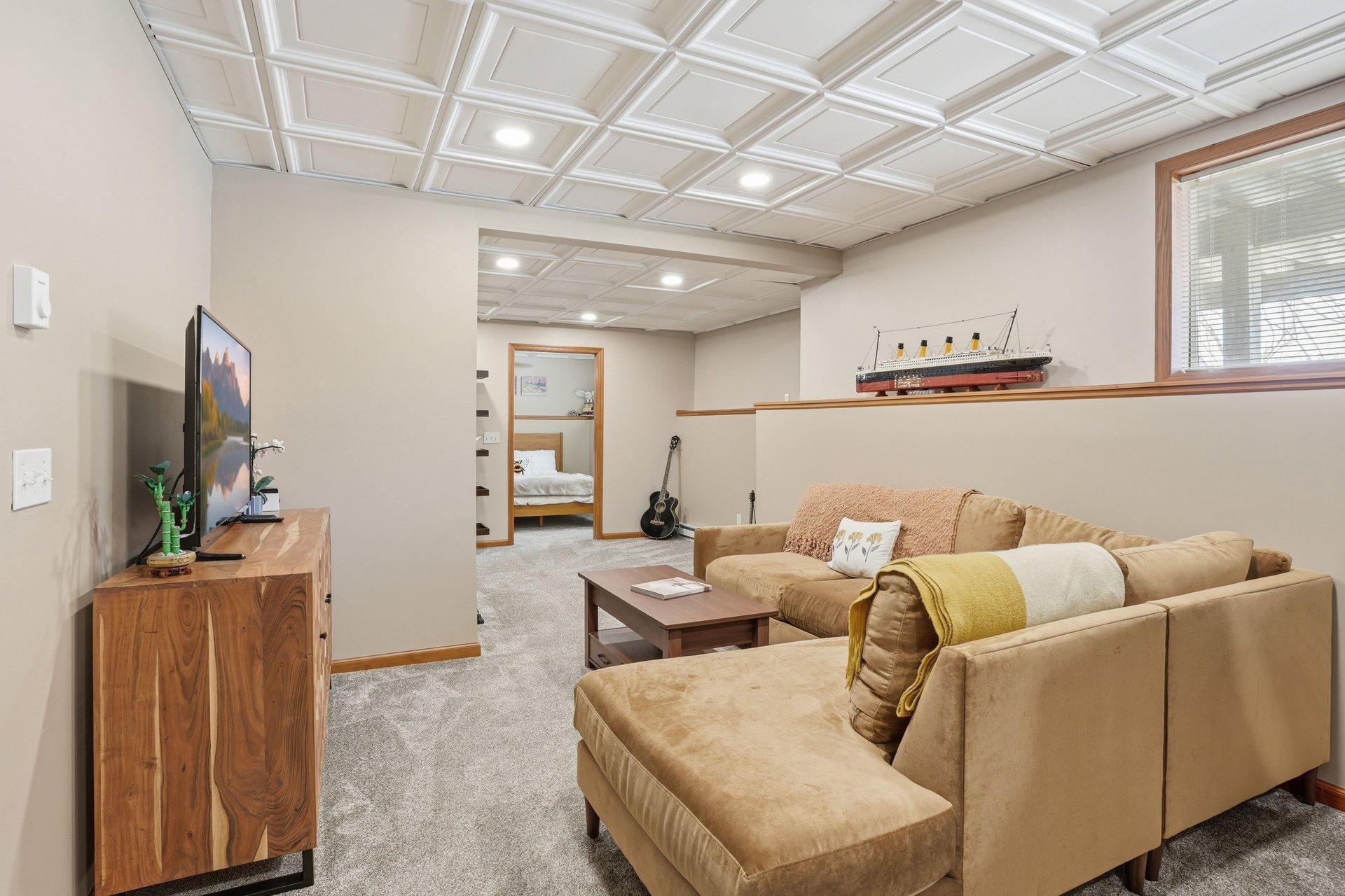 Upstairs, the spacious owner's ensuite includes a large bedroom and a private bath with separate tub and shower. The finished lower level features an inviting living room, flexible bonus space, and a fifth bedroom--ideal for guests, hobbies, or a home gym. An oversized utility room provides abundant storage. Association dues cover common areas and maintenance for easy living.
