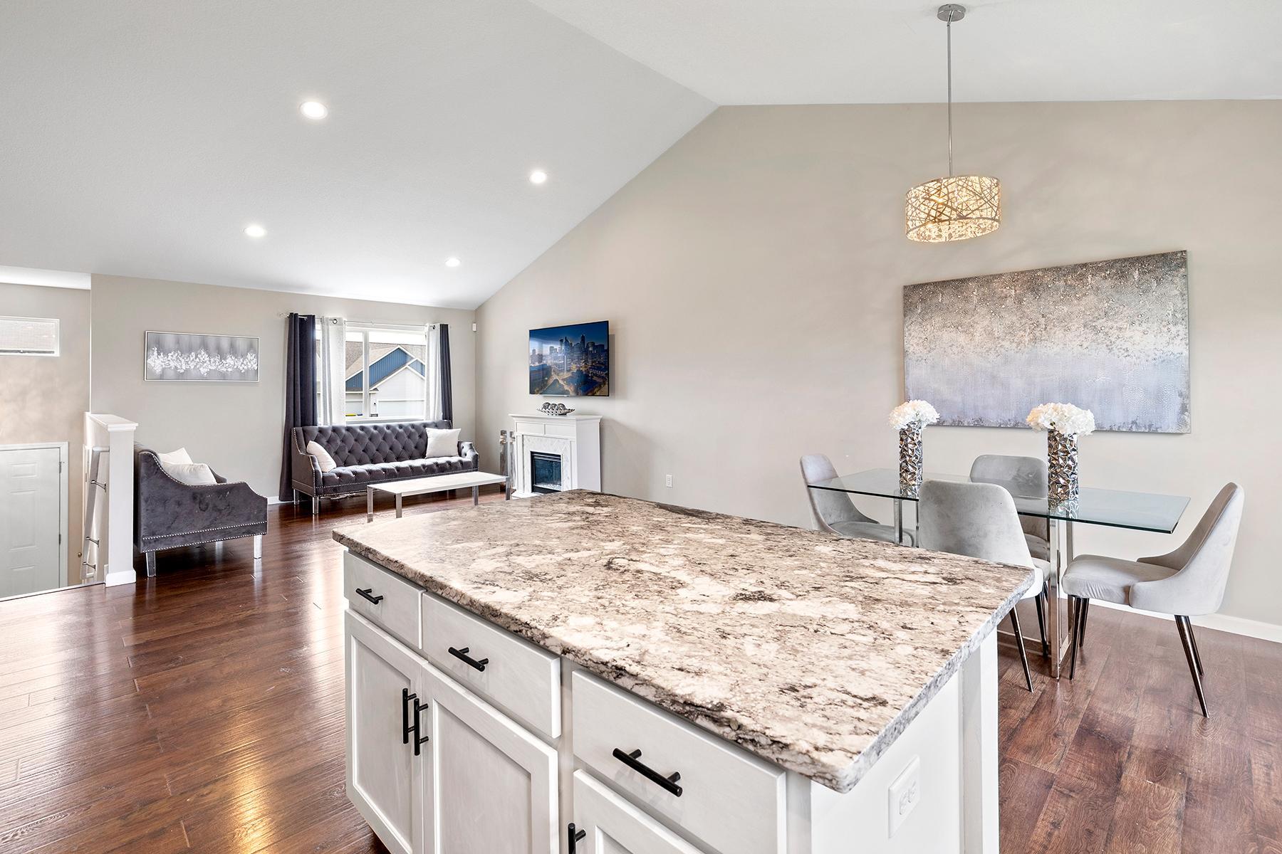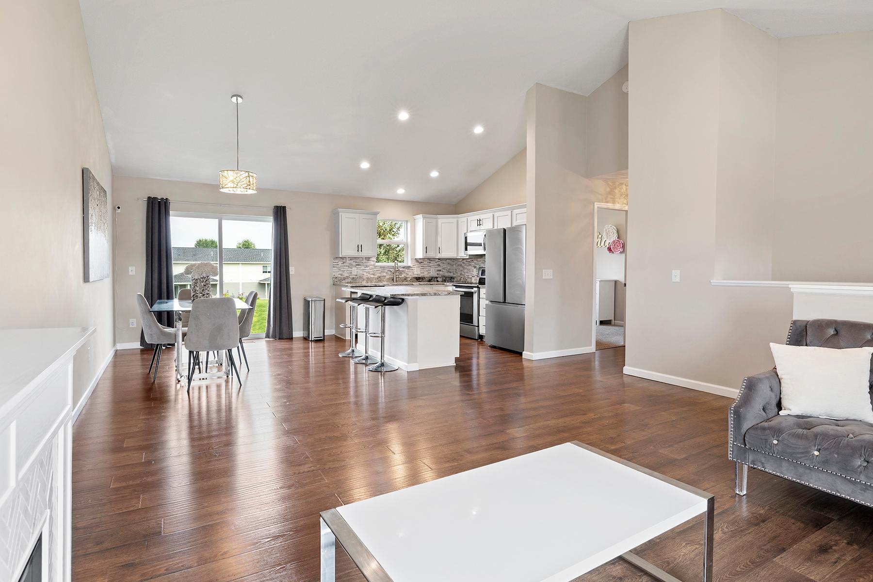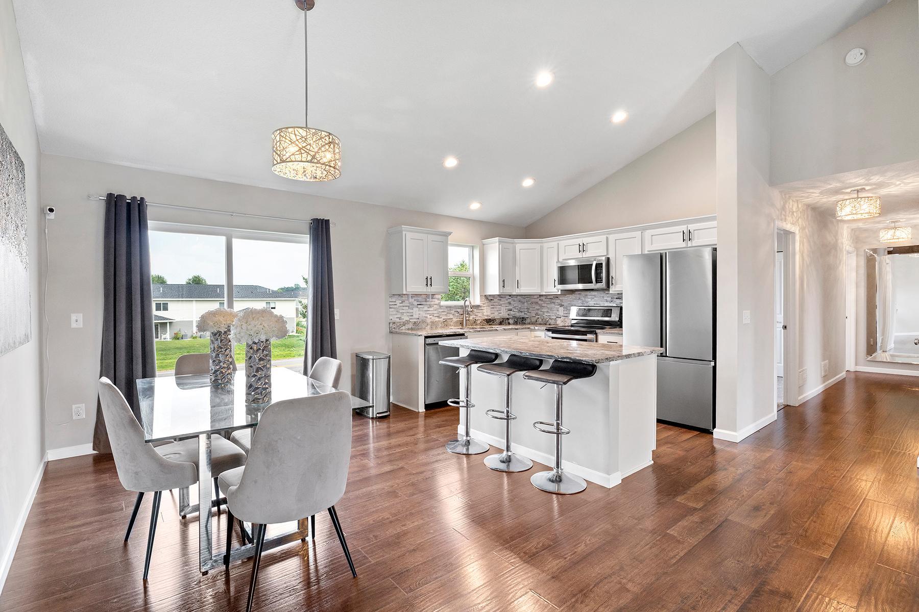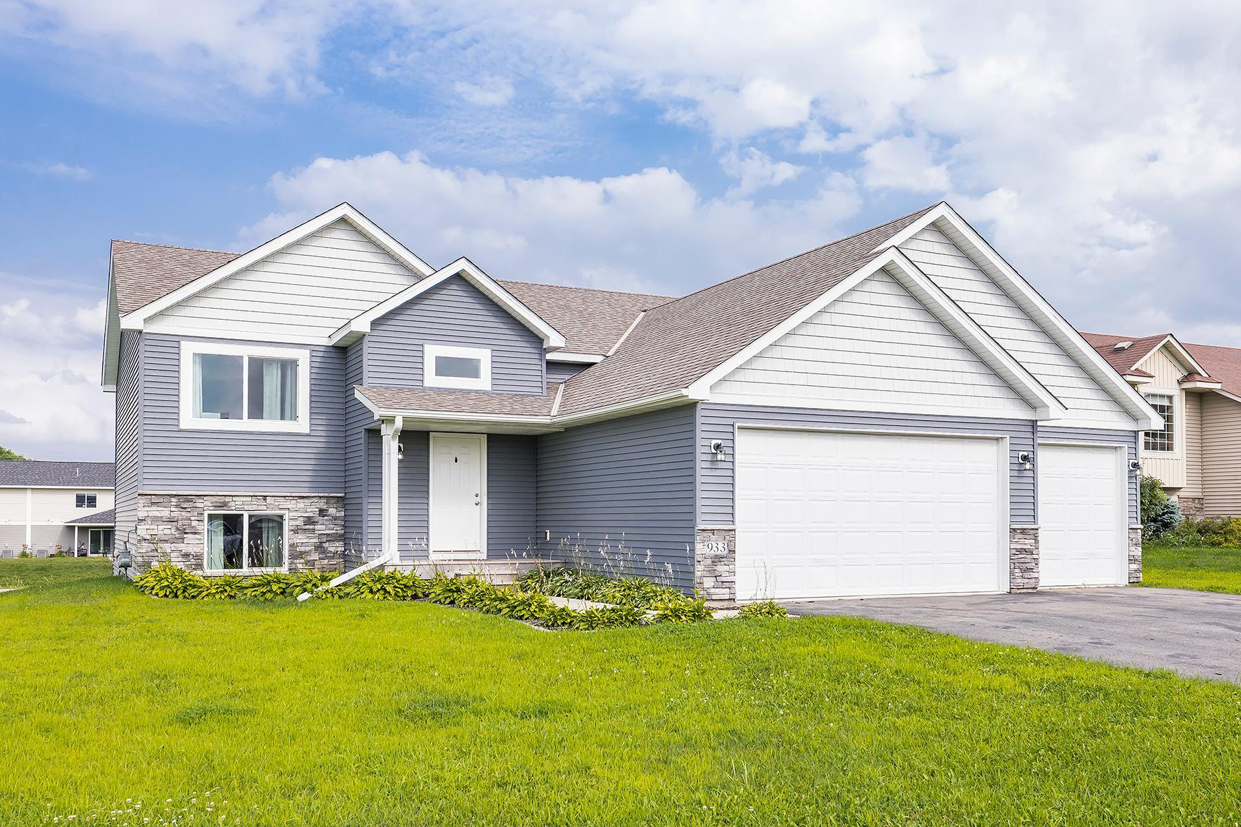 Welcome to 933 Cobblestone Lane -- a spacious and inviting split-level home designed for both everyday comfort and effortless entertaining. Step inside to discover an open-concept layout featuring soaring 13-foot vaulted ceilings, abundant natural light, and a seamless flow between the kitchen, dining, and living areas. The kitchen is thoughtfully laid out with a center island, pantry closet, and informal dining space that overlooks the backyard with future deck access. Upstairs, the private primary suite offers a generous walk-in closet and full ensuite bath, while two additional bedrooms and a second full bath complete the upper level. The fully finished walkout lower level expands your living space with a large family room, two more bedrooms, a third full bath, laundry area, and plenty of storage. Enjoy the comfort of a fully finished lower level--without the price tag of new construction. For added convenience and future-ready living, the home also features a 60 AMP 240V Level 2 EV charging receptacle already installed -- ideal for electric vehicle owners. Conveniently located with quick access to Hwy 169 and just minutes from restaurants, schools, and essential amenities, this home delivers the perfect blend of space, style, and location. Schedule your showing today!